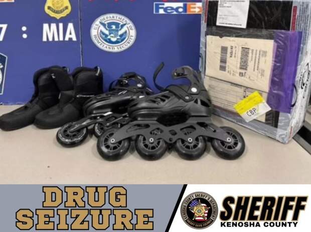 “With the assistance of U.S. Customs and Border Protection, the wheels of the rollerblades were identified as suspicious,” the Kenosha County Sheriff’s Department wrote.