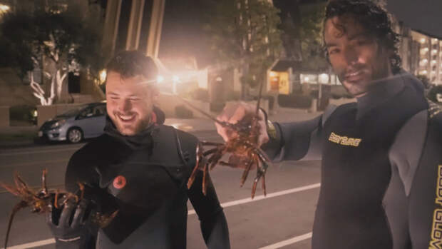 Lobster diving is a super niche activity that takes a lot of patience. You can find lobsters anywhere from 15-foot to 60-foot waters and they like to hide out from predators on the rocky coast line in holes and cracks, making for a difficult search. They are found more frequently at night, using the dark to hunt for food, which is why Diaz and Efron begin their evening at 8:30 p.m., despite the freezing cold water.