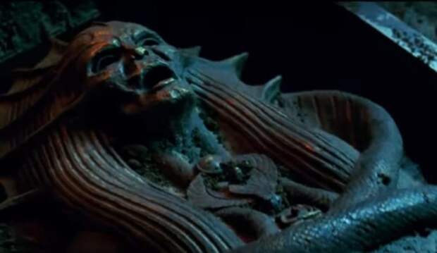 The archaeologists opened the sarcophagus that was buried 16-feet underground to uncover a carved alabaster head and three skeletons bathing in a red liquid, thought to be nasty sewage water. The huge coffin did release a curse of a putrid smell and forced the excavation team to flee from the puke-inducing stench.