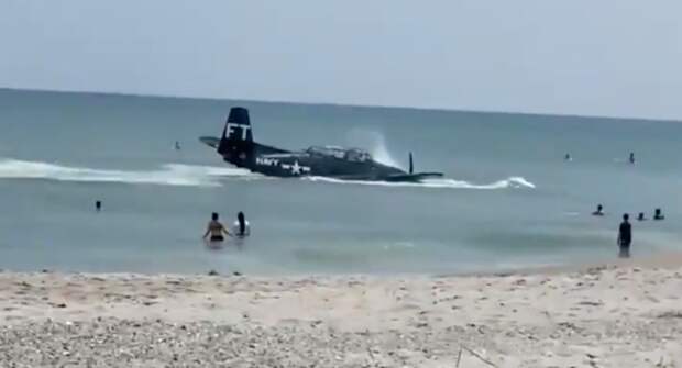 The plane, an American torpedo bomber, had reportedly suffered an engine failure and was forced to make an emergency landing right there in the ocean. Luckily, the pilot was okay.